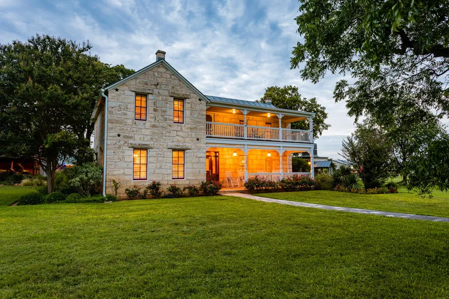 Dont miss your opportunity to own a unique piece of history with Pedernales River frontage located just 7 miles east of Fredericksburg, Texas. This 52-acre homestead comes with a plethora of amenities. Originally built in 1905, the main house consists of 4 bedrooms and 3.5 baths. Totally restored in 1990 and renovated in 2012, this home has the ambience of a true Hill Country gem with modern conveniences. Just back of the home is a heated pool and spa with pool house. The guest house is an original Dog-Trot log cabin built between 1875-1880. Totally restored, it offers all the creature comforts of the 21 century. Other improvements include a 4,500 sq./ft equipment barn, 4,400 sq./ft insulated barn with heat, great set of cattle pens, original stone cistern house with cellar and the original two-story barn which is circa 1890s. Water abounds on this property, with over 1,100 feet ...