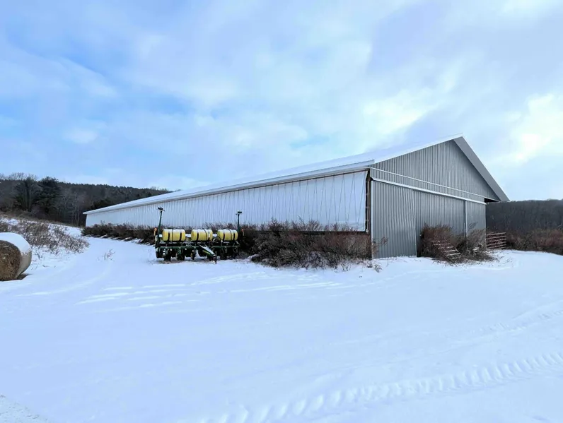 Sitting up on the hill and only 2 miles outside the City of Hornell is this established beef operation. The main barn was built in 2021 for feeding livestock and measures 200 x 60. The carefully constructed building includes retractable walls for ventilation, gates, no-freeze waterers, and a 6-foot overhang above the feeding area. Adjacent to the main barn is an additional 100 x 20 covered area to feed more animals. Behind the barns are approximately 4 acres of pastureland with high-tensile fencing and a 40 x 16 run-in shed.