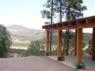NORTH OF MORA NEW MEXICO 1400 sq ft Log home 2 bedroom 1 bath on top of mountain to survey your kingdom. Tremendous views from this beautiful log home with 1600 feet of decks surrounding the home. Access decks from every room in the home. Property has paved road from State Highway 434 for easy access. Home is appointed in southwest style with top of the line everything. Vacation retreat or year around living. Beautiful local stone fire place with insert is more than adequate to heat home. Separate heated Log building housing well with storage. This property is as maintenance free as a property can get. Lovely space with open area for kitchen, dining and livingroom. Kitchen with custom cabinets provides plenty of storage in this easy to cook in space. There is a pad with power for RV parking at the bottom of the mountain as well as 2- one room A frame heated cabins with power plus 2 footprints ready for another two if you need them. A unique property that has outstanding features sells with all accoutrements in home. Jst bring groceries and your tooth brush.