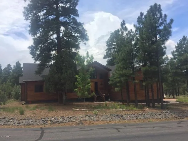 Log sided home in gated community w/ real log accents on all corners. This home has it all 3 bed 2.5 bath. Tons of upgrades; Granite tops, marble, slate, travertine, vaulted T&G, built in wet bar, wood floor,custom cabinets, family room, and living room. Also a 11 x 14 walk-in closet in the master and large closets in each bedroom. Back deck is covered and is 40 x 11, hot tub ready. Large, covered front porch. Beautifully landscaped with pavers, walkways, additional trees, drip system, and wild flowering plants. Don't miss out on this oasis in the pines.