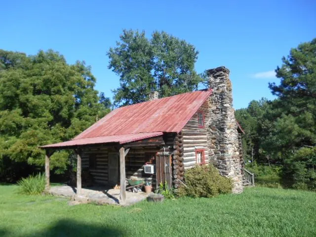 Log cabin, stone fireplace, 2 flues, pond, nice trees, private setting. Great weekend or permanent home site.