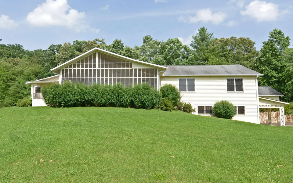 TRACKROCK SENSATION... 3.42 acres of Fenced rolling meadows with a 3,880 Sq Ft Country Home. 5BR/3BA Ranch w/ an outrageously Huge LR/DR combo plus a BIG kitchen for Entertaining, Additional Dining space. Master Suite that is High and Wide! The Wall space is amazing for artwork.Hardwood floors throughout main floor. A sunroom attaches the Master suite to the Guest suite. BIG Screened porch looking at the mountains and fenced meadows. Many patio doors and windows. Gas log fplc in great room. Laundry on the main floor plus laundry in the lower level which is finished w/ a Den and 2BR/2BA. Wonderful porches and patios. 3 car detached garage is deep for Boat storage and workshops. The possibilities are endless with this property.