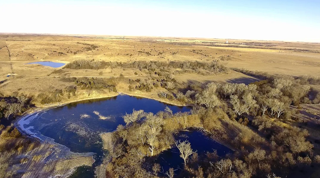 - 6-acre stocked pond that is a magnet for waterfowl traveling through the flyway which eventually ends up at the Kirwin National Wildlife Refuge only 14 miles to the north