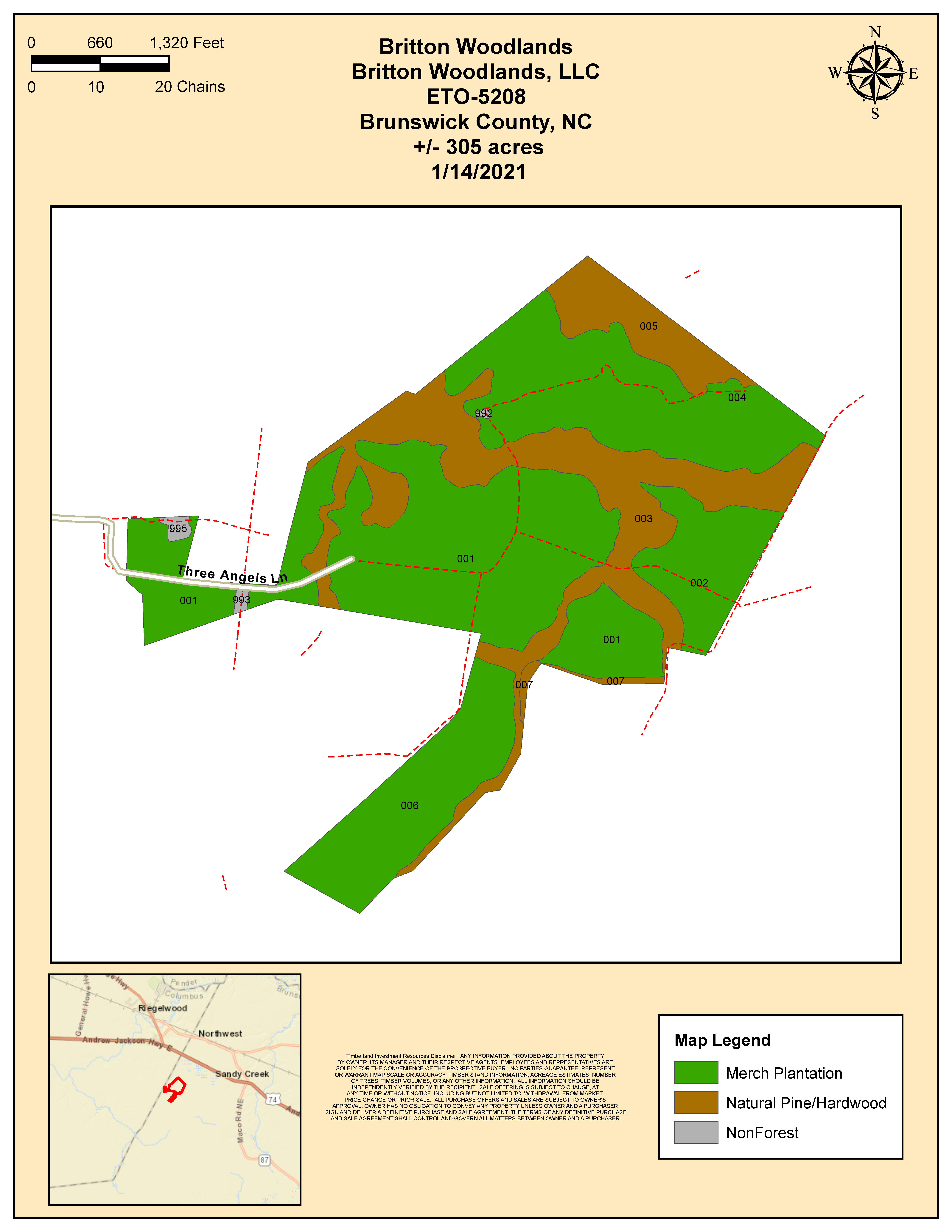 This property, accessed from Up the Branch Rd in Delco, NC, consists of 305 acres. It is located just south of Hwy 74 and is only 15 miles from downtown Wilmington. This tract is very diverse and offers pine plantations, hardwoods, and also has Big Branch Creek running through it. There are large landowners on all sides of this property which allows a secluded feel when you are out there. This property is loaded with wild game and offers endless possibilities on what you can do with it. The breakdown of the acreage is below.