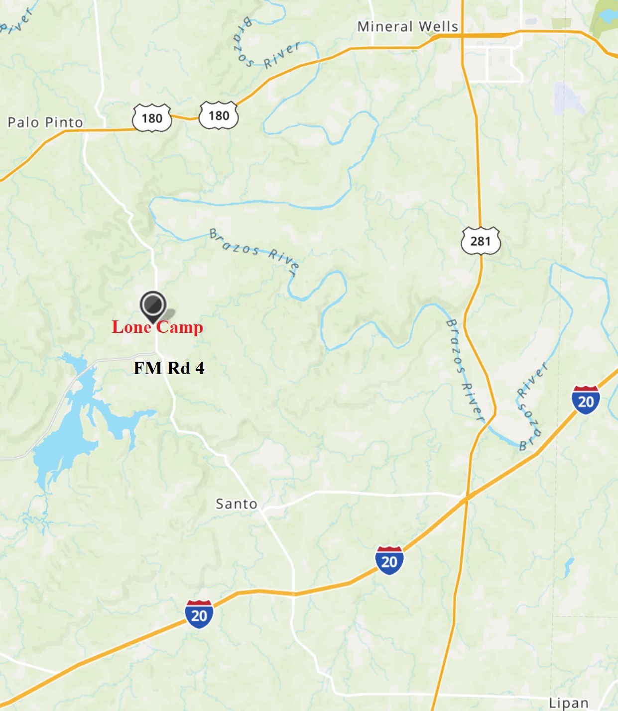 53.3 Acre Cattle & Recreational Property, Palo Pinto County, Texas: Approximately 1 hour & 20 minutes west of Fort Worth, between Santo and Palo Pinto in Lone Camp. Mostly in established coastal bermuda grass in sandy loam soil with a large stock pond. Level to sloping with scattered to timber in the back with another nice pond. A 3-2-2 older brick home, an all steel shop building. A large covered shed with a RR storage car in the center, cattle pens, and cross fencing. Paved on two sides. Some minerals. $997,500.00.