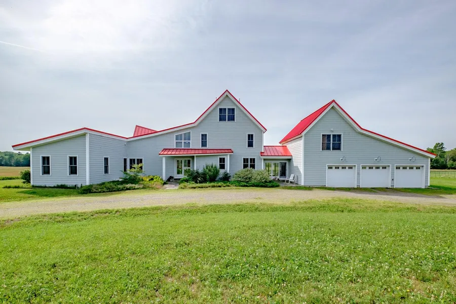 Designed by Scott Simon Architects, this energy-efficient, contemporary, open plan farmhouse sits in a scenic level 50+acre meadow. Its cost effective Geo-thermal heating system comfortably heats the house, including the great room, master bedroom, the second floor bedrooms and over-garage office. ADA designed first floor living while second floor will accommodate family or visitors. Attached to the house is a three-bay garage and heated workshop. The barn is 30' x 60' , with 10' overhangs on both sides and water and electricity. The fields have been chemical free for more than 10 yrs. Located 20 minutes from Augusta, 28 minutes to Brunswick and 45 minutes to Portland. *** READY FOR YOUR ENTREPRENEURIAL ADVENTURE! YOU WILL SAY "WOW" WHEN YOU WALK THROUGH THE DOOR. ***