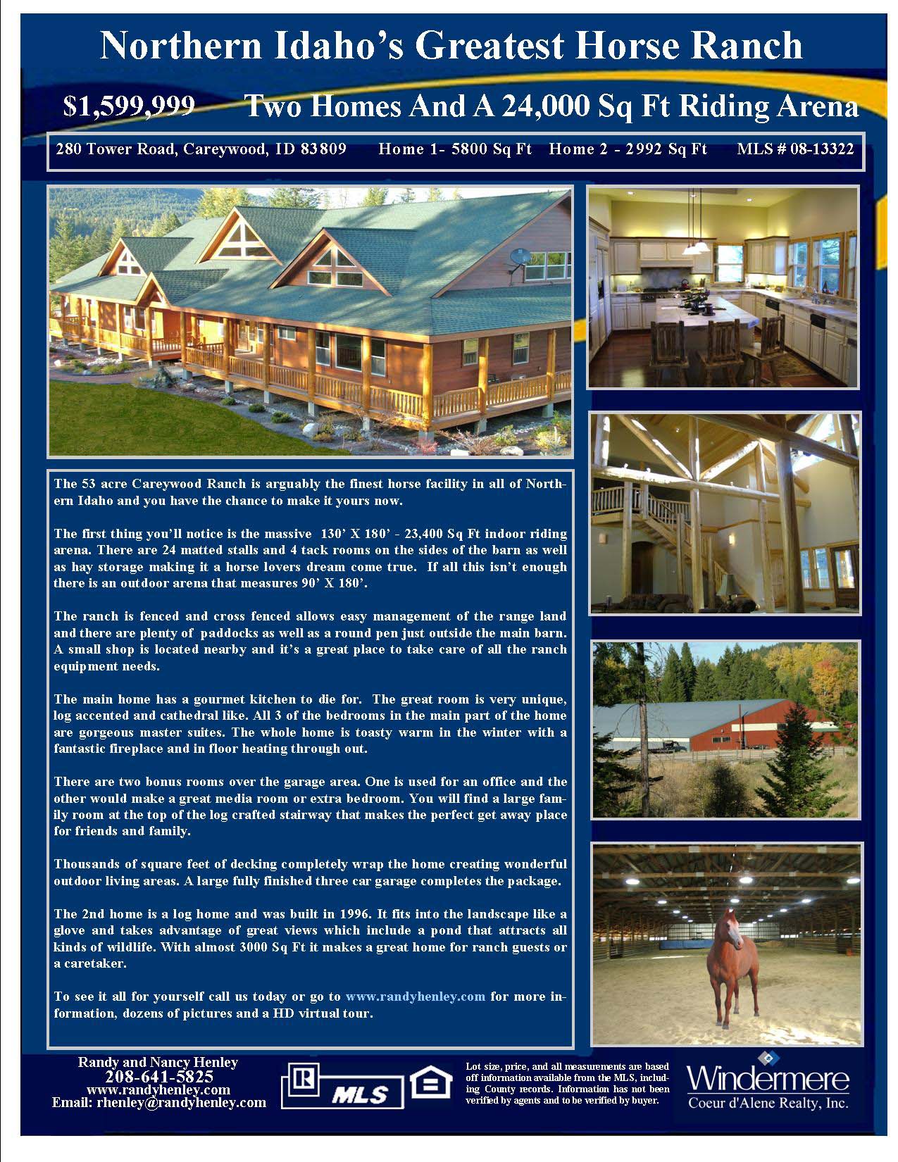 The 53 acre Careywood Ranch is arguably the finest horse facility in all of Northern Idaho and you have the chance to make it yours now.