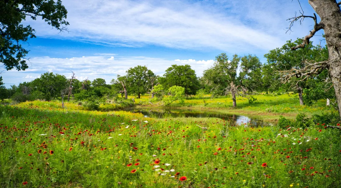 Mostly rolling post oak, blackjack oak and some mesquite hill country interrupted by wet weather creek and small earthen conservation dams/ponds. Granite gravel soils. Perfect knoll near creek and ancient live oak tree would make a great spot for weekend cabin or residence. Deer and turkey country. Completely fenced with electricity crossing property. Ag valuation in place.