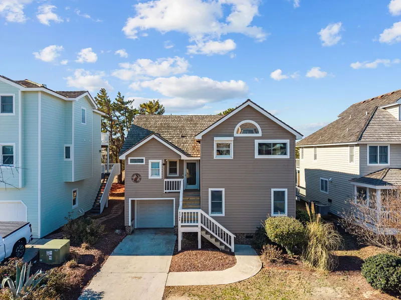 Beautifully updated single-family home located in the desirable Captain’s Watch neighborhood within the Village at Nags Head. The home features 3 very spacious bedrooms, 2.5 baths, multi-level decks and over 1800 square feet of heated living space. The kitchen has been completely renovated with abundant custom cabinetry, quartz countertops, and stainless steel appliances. Open all the cabinets for a full picture of what all this kitchen has to offer: slide out drawers, decorative lighted shelving, Lazy Susan corner, there's even a mixer lift with hidden outlet! All bathrooms have been updated, including a spacious primary suite with a show stopper top-of-the-line tiled shower. Additional highlights include hardwood floors, a gas fireplace with custom built-in space for TV and mantle, multi-level outdoor decks for extended living space. Other updates: fresh interior paint, a 4yo Fortified...