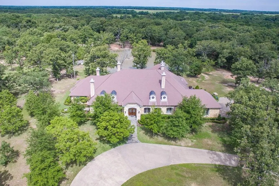 Unique country French home in ETX with finest quality &timeless architecture! Luxurious 7690sqft main home w-grand marble entry, 6 gas firepls, his-her closets, warm hardwoods, complete gym +3 charming guest homes set on 92 rolling acres. Features crop, fruit trees, berry vines, roaming wild deer, 3stock ponds, well, running creek &pastureland. 70x90comm-grade greenhouse, 40x60 metal wkshp, 31x24 garage, helipad, &gas pump. Outdoor stone patio &gazebo overlooking lighted fountain! 1hr from Dallas. Ideal B&B, family vacation, corp.retreat or haven from big city! Enjoy wildlife, star gazing, ATV riding, hiking, fishing, hunting, paddle-boating+more! Main home has 2bdrms, 3.1baths; others in guest hms. See video!
