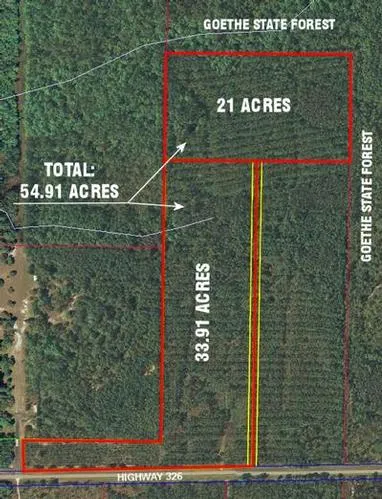 BEAUTIFUL 54.9 WOODED ACRES on Highway 326. Mature pines with scattered oaks. Reduced to $7,900 per acre. Adjoins the Goethe National Forest. Ideal for hunting, hiking or trail riding. Owner Financing Available.