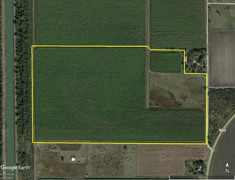 Irrigated farm land that is presently planted in sugar cane north of Hwy 107 on W Cantu road.