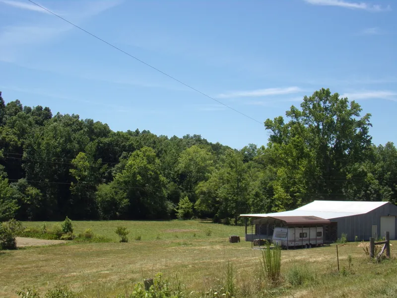 APPROX. 54 ACRES WITH SEVERAL GREAT HOME SITES, GREAT HUNTING LAND FOR DEER AND TURKEY, SPRING FED POND STOCKED WITH BASS, BREAM AND CRAPIE. ALREADY HAS A 32 X 50 FT SHOP WITH 2 12X12 ROLL UP DOORS, CONCRETE FLOORS, 200 AMP ELECTRIC SERVICE AND WATER. FRONT BRICKED ON 20X58 APPARTMENT STARTED ON ONE SIDE OF SHOP AND A 20 FOOT SHED ON THE OTHER SIDE. HAS A CAMPER HOOK UP, NEW SEPTIC TANK. PARTICALLY FENCED. THERE'S A STREAM THREW THE PROPERTY AND TRAILS YOU CAN RIDE AN ATV SEVERAL HUNTING HOUSES THREW OUT THE PROPERTY.