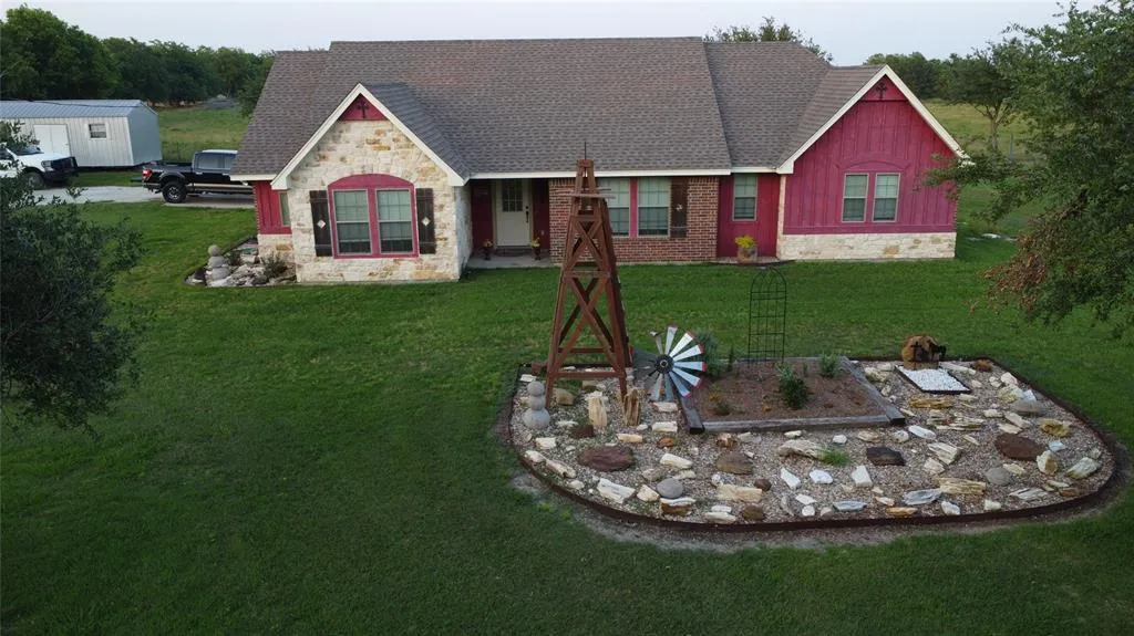 3-2 on 30 gorgeous acres, improved pasture, two ponds, and scattered oak trees in luscious setting on the corner of two FM roads. Home has oversized den, office, high ceiling, 30x40 carport, and up to 67 additional acres available.