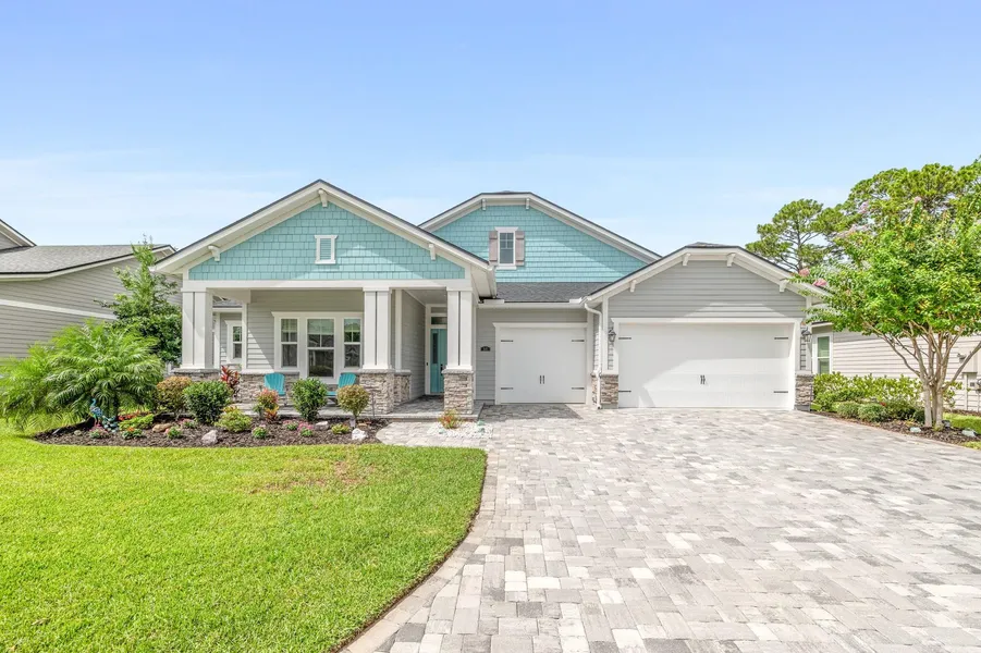 Welcome to a residence where timeless elegance meets modern sophistication. As you approach this stately home, a custom entry door with intricate transom windows with decorative glass warmly welcomes you, hinting at the exquisite craftsmanship that lies within this Mastercraft built home. The grand foyer opens into a harmonious living space characterized by 10-foot ceilings and 8-foot solid core doors that define each room with understated luxury. The great room boasting a coffered ceiling and custom woodworking creating an air of refined sophistication. Custom window treatments draw attention to the expansive lanai harboring 540 square feet of outdoor living space. The flex room showcases a captivating custom accent wall, a statement of the home's attention to detail and design. This versatile space, with its elegant touches, adapts effortlessly to your needsbe it a study, playroom, or serene retreat.