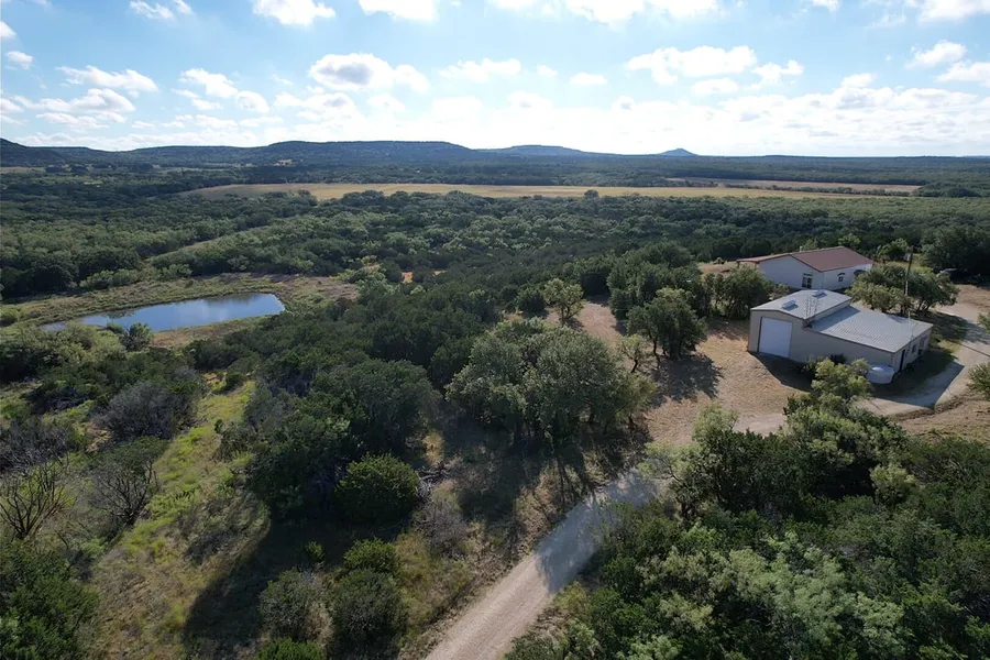 Properties like this do not come around often. This 55.13-acre property features a modern 2,000 sqft Barndominium, constructed in 2019, designed for both comfort and functionality. This estate includes a charming mancave/mother-in-law cabin equipped with a full kitchen and bath, perfect for guests or relaxation. The insulated shop and covered RV storage provide ample space for hobbies and outdoor equipment, while the expansive back porch offers breathtaking views of the surrounding landscape. The land is adorned with live oak and post oak trees, complemented by a wet weather creek and a large stock tank with bass, catfish, and bluegill. Perched on a hill, the property boasts stunning vistas of the West Texas mountain range, making it a must-see for those seeking a unique and serene retreat. There is an above ground pool that sits beneath some large live oaks with a nice wooden deck built around to relax and enjoy the amazing views. Call today for your showing.