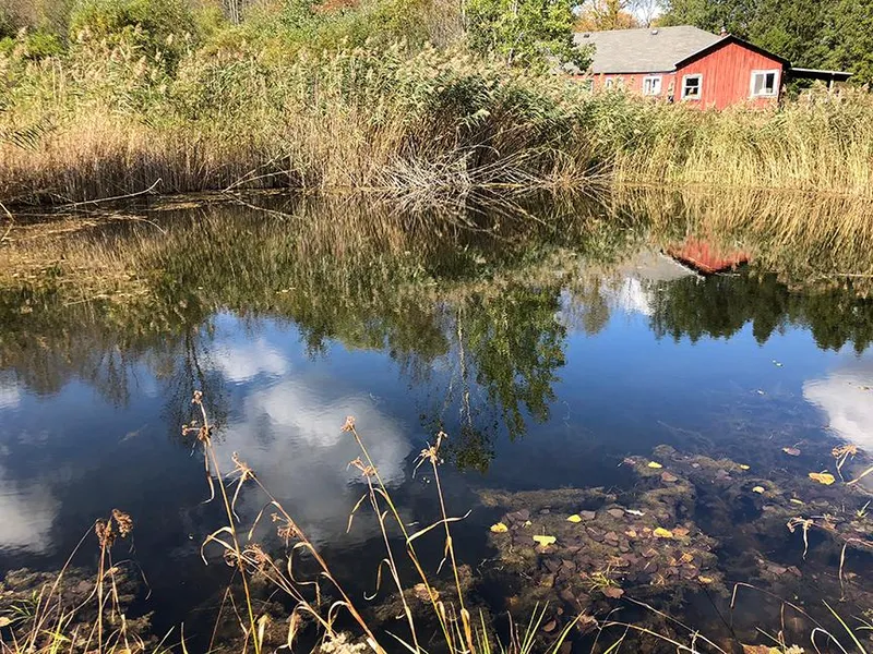 Majority of the acreage is a nice stand of hardwoods with some mature trees. Also, there are several apple trees, brushy areas and small fields for food plots. There are wildlife signs throughout the property. Crystal clear spring-fed and stocked pond for fishing and swimming. This property borders thousands of acres of State Land.
