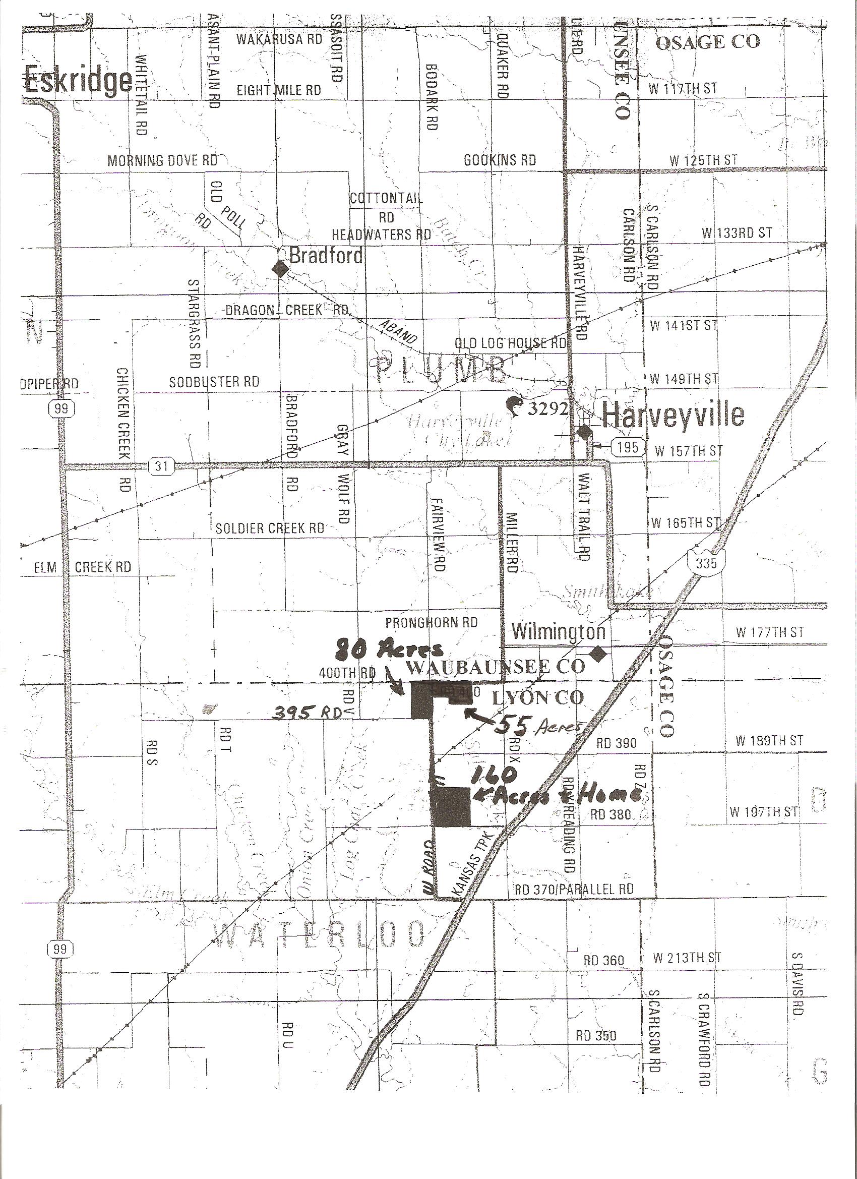 Research Parcel InformationFrom Eskridge, Kansas south on 99 Highway to 31 Highway, east to Miller Road, south to 400 Road, west to property on south side.