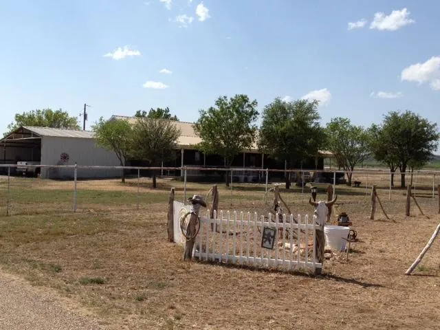 Country home north west of San Angelo the sets in the middle of 55 acres. This 3 bedroom 2.5 bath home with an office, the kitchen has been remodeled and the house has been well maintained through out. Split bedroom arrangement with huge master bedroom and bathroom. Bath has garden tub and shower and lots of closet space. Bedrooms are both 15x15 with Jack and Jill bathroom and walk-in closets. Kitchen has custom cherry wood cabinets with slid outs on all lower cabinets. There are granite counter tops and all appliances stay. Large laundry room with till floors, washer and drier also stay with the property.