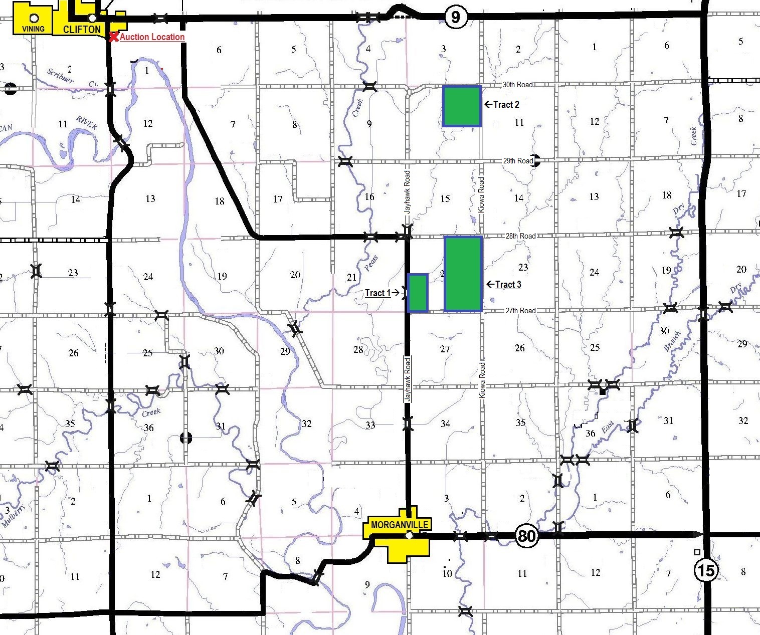 The southwest corner of this farm is the intersection of Jayhawk Road & 27th Road; 3 miles north of Morganville.