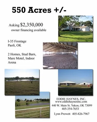 I-35 Frontage, 2 homes, stud barn, mare motel, Indoor Arena, owner financing available