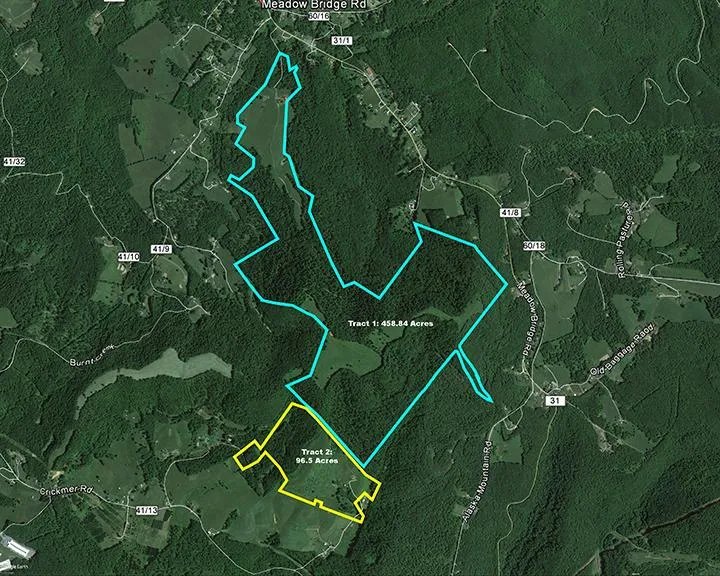 Tract 2: Follow directions for Tract 1 and turn left onto Alaska Mountain Rd. (Rt. 41/8), Take a right onto Crickmer Rd., look for the signs at Martin Farm Rd.