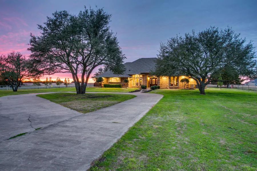 Stunning 3 bedrooms, 3 and half baths, updated home. Corner lot with pond with nearly 3 acres. Oversized 4 car garage and large workshop. Hardwood and tile floors throughout, ceiling fans, custom drapes and blinds. Perfect home for entertaining, yet comfortable enough for just family. Chef's dream kitchen, generous granite countertops, custom cabinets for storage, electric cooktop, electric oven with warming drawer, extra large island, dishwasher,farm sink, lots of windows for natural light. Large Master bedroom suite, granite vanities, roomy step in shower, spa tub. All bedrooms have their own private bath. Family room has a half bath and small office. Formal LR has brick fireplace and beautiful wood mantle.