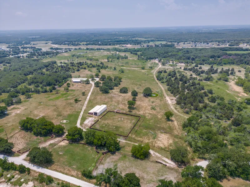 Very private horse facility on 26 picturesque acres. Mature trees, plenty of pasture, two barns, lighted arena, 16 stall capacity, round pen, paddocks and more! RV set ups, two septics, a well, stock tank and private water. Frost free faucets to all paddocks and barns, two gated entries. A beautifully renovated barndominium in 2022. The show barn also has a workshop area…too much to list... Come sit on your covered front porch and enjoy gorgeous sunsets and incredible views. All mineral rights convey.