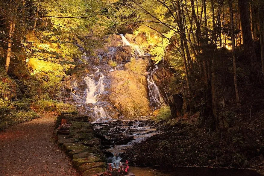 Previously known as Jeudevine Falls event venue, this enchanting 56-acre property has 2 brooks merging to create mesmerizing waterfalls, including a majestic 130' cascade, the 4th tallest & 2nd widest falls in VT. Handicap accessible, lighted falls are adorned with gazebo and amphitheater, a magical setting for weddings. Parking lot holds 80+ cars. Wander through woods of maples, evergreens and birch, where majestic stone paths wind thru vibrant perennial gardens. At least 40 variety of rhododendrons and azaleas and 25+/- acres maple trees. This historic gem is a testament to the past as part of the Underground Railroad. Home features 3 beds, office, bonus room, & sizeable attic, easily transformed into living space. Natural wood features include pine & cherry walls and maple & cherry floors. 2 barns, one with a loft and electric, are great for farming & horses or space for entertaining....