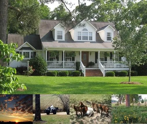 Home is situated on 56.72 acres. This acreage consists of open pasture, woodland, planted longleaf pine, fruit trees, pecan trees, barns and some fencing. (See Aerial photo on back)