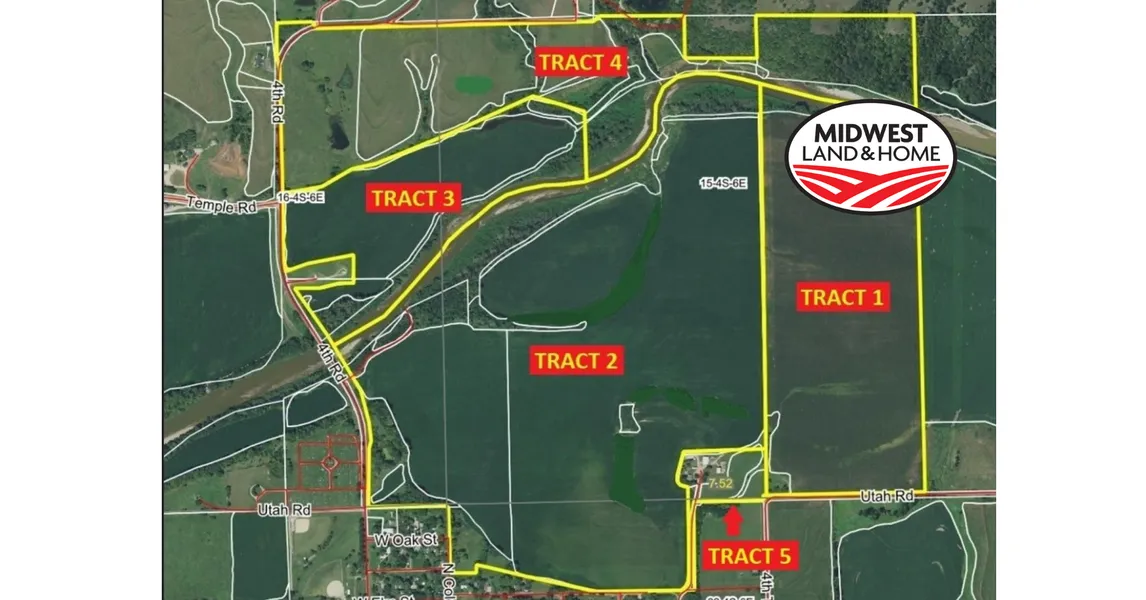 Terms & Possession: 10% down day of sale, balance due at closing on or before 9/6/2023. Seller to pay 2022 and prior years taxes with 2023 taxes prorated to date of closing. Title insurance, escrow and closing costs to be split equally between buyer and seller. Property to be sold AS-IS, WHERE-IS subject to items that would be disclosed on a survey, claims of adverse possession, and all easements, exceptions of record . All inspections should be made prior to the day of the sale. Possession at closing subject to tenants rights. (See website for details). Sellers interest in mineral rights transfer with the sale of property. This is a cash sale and is not subject to financing, have your financing arrangements made prior to auction. Midwest Land and Home is acting as a Sellers Agent and represents the sellers interest. All information has come from reliable sources; however, potential buyers are encouraged to verify all information independently. Seller expressly disclaims any liability for errors, omissions or changes regarding any information provided for these sales. Potential purchasers are strongly urged to rely solely upon their own inspections and opinions in preparing to purchase property and are expressly advised to not rely on any representations made by the seller or their agents. Statements made the day of sale take precedence over all other printed materials. Aerials and acres are estimates and representations ONLYactual acres and property lines will be determined by a survey prior to closing.