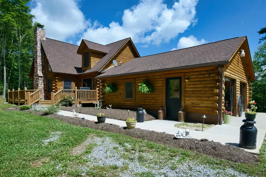 Luxurious, treasured log home on 13+ partially wooded acres! Views of Buffalo Mtn from covered front porch in the Fall/Winter months, gather for cookouts on wrap around deck & end the days relaxing around the firepit. Main level entrance from 2-car garage thru breezeway &relax in vaulted great room w/ multitude of windows for natural light & wood burning fireplace to cozy by in the winter. Primary bedroom w/ walk-in closet on main level w/ custom tiled shower. Additional 2 bedrooms upstairs have plenty of creative storage space. Pine floors & custom features throughout including a built-in china cabinet from an old farmhouse & a piece of Cambria history adorns the wet bar with a moonshine barrel from the Country Store of a local famous photographer, Earl Palmer. Custom made chicken coop in yard complete with cameras, solar electricity, heat and fans. The unfinished walk-out basement can ...