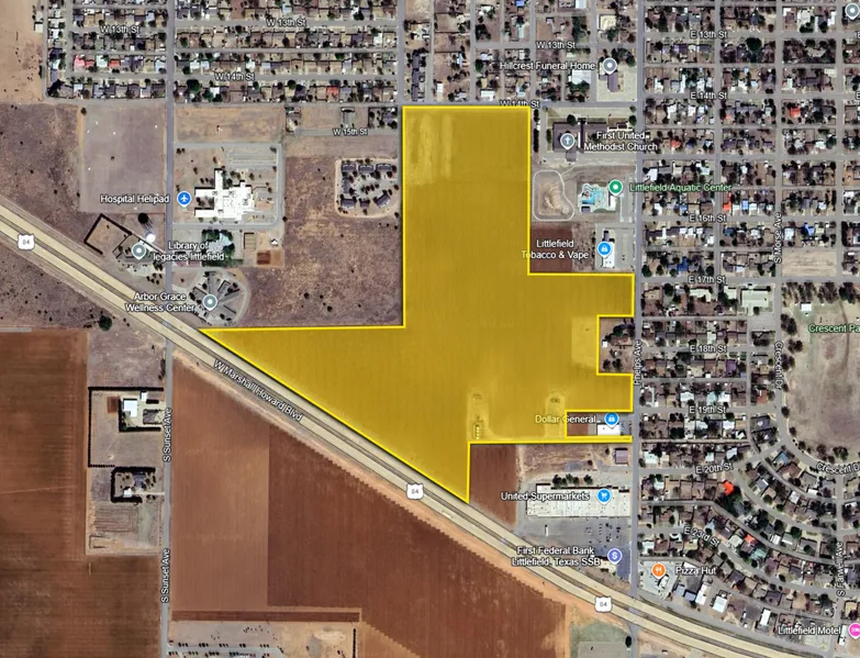 Prime development tract available in Littlefield, TX. This tract is conveniently located off of the Marshall Howard access road that feeds onto Hwy 84. Hwy 84 is one of the main throughfares between Texas and New Mexico. This tract is 30 minutes form Lubbock, TX. No flood plain. Zoned C1 - Commercial Light Retail which allows for a wide variety of uses. $33,000/Acre.