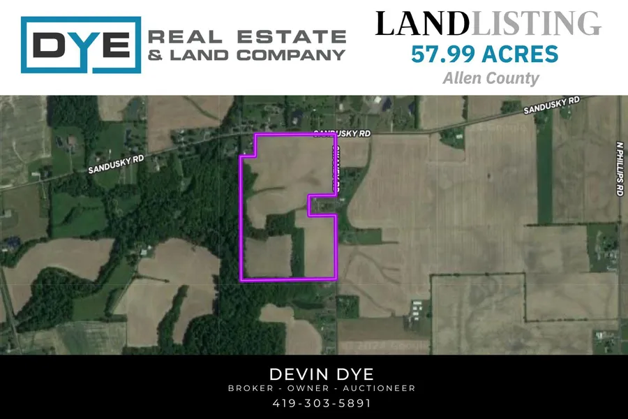 57.99 acres located in eastern Allen County Ohio. This farm offers both recreational and farmland income. It has rolling topography that would also make a great building location. If your looking for both farm investment and recreation then look no further than this opportunity.