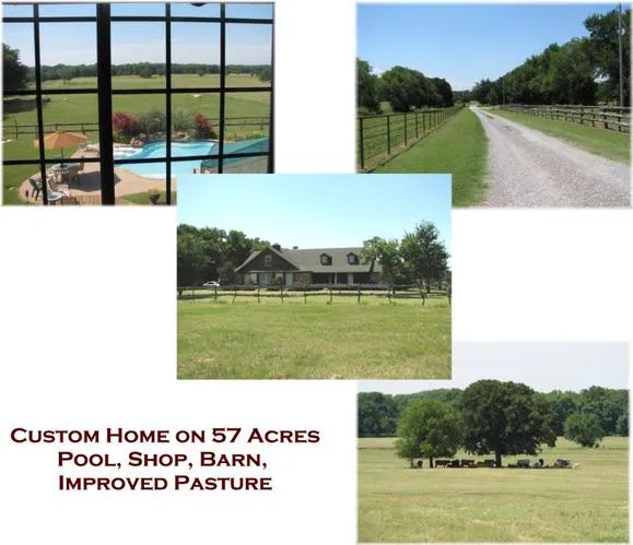 This beautiful 57 acre property features a gorgeous custom built home (1999) with approximately 3,150 square feet of living area, a beautifully landscaped pool, a 36 X 28 shop building, a barn and improved fenced pasture.