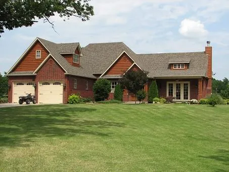 57 acre peninsula with over 3/4 mile of Lake Hudson waterfront and a private turf runway. Stunning brick and cedar 4 year old home offering 3 bedrooms and 3 baths, Travertine floors, Viking appliances, granite counter tops, wood-burning fireplace, vaulted ceilings, large Whirlpool, oversize walk-in shower, attached garage, beautiful landscaping and much more. Covered shelter with outdoor kitchen, covered boat dock and boat rail system. 50 x 70 insulated and heated shop/hanger with guest apartment.