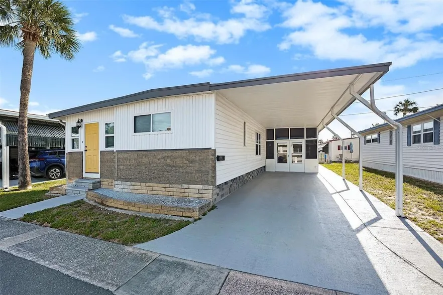 Welcome to your slice of paradise in the desirable Sunset Palms 55+ community of Pinellas Park! This charming two-bedroom, two-bathroom mobile home offers a delightful Florida lifestyle with numerous updates and fantastic amenities. Step inside through the inviting yellow front door and be greeted by a formal dining room, perfect for entertaining. Beyond lies a spacious great room, seamlessly blending the family/living area with an open kitchen featuring a cozy dinette. This home boasts significant upgrades for peace of mind, including new hurricane-rated windows and doors, a new membrane roof, and a new AC system. The exterior features attractive vertical cream siding accented by stylish stone fascia. Price includes the Share (valued at $55,000). Enjoy the Florida sunshine in the expansive, covered sunroom located on the right side of the home. Complete with ample seating and a complime...