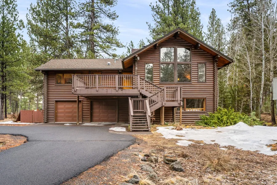 Escape to your own lodge-style retreat in Sunriver! This distinctive 5-bedroom, 3-bath log home is uniquely crafted w/ cedar lathe over the chinking, adding to its rustic charm. Ideally located across the street from the Big Deschutes River & close to Sunriver's North End amenities, this home offers both serenity & convenience. The vaulted great room boasts expansive windows that flood the space w/ natural light, while the lower-level bonus family room provides add'l space to relax. The kitchen features stainless steel appliances, blue-pine cabinetry, and an inviting eating bar. As you enter the driveway, you're welcomed by a charming cabin-in-the-woods setting, leading to an oversized two-car garage, carport, & plenty of parking. Enjoy all that Sunriver has to offer—30+ miles of paved bike paths, world-class golf, tennis & pickleball, & easy access to the Deschutes River for kayaking, p...