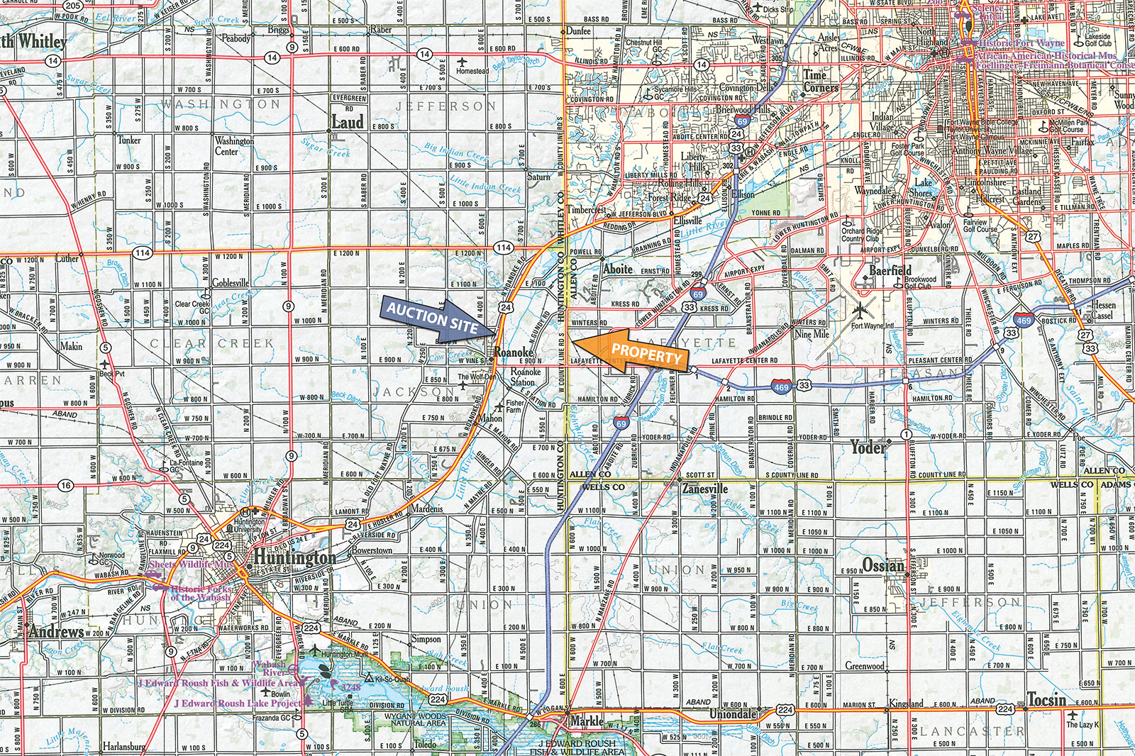 From Roanoke, travel 2 miles east on Lafayette Center Road, turn north on Allen County Line Road. Travel .5 miles to property.