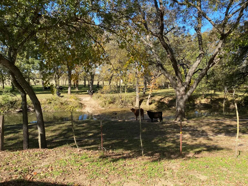 Beautiful views on 58 acres with live creek and large pond, mature pecan trees and bottom land. 2 bedroom 1 bath frame home remodeled just 4 years ago. Home is currently on a month to month lease. Large well equipped shop with 5 bay doors, 2 doors are 12x10 and the other 3 are 10x10. The entire shop is 160' long with the first 3 bays being 40' deep and the remainder is 30' deep, the last 60' is open fronted. Shop offers many possibilities for income. Could easily be converted to storage rental units. Water and electricity at the barn and shop with a separate electric meter from the house. Barn has pipe cattle working and holding pens with water ran throughout pens.