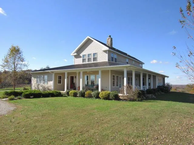 Rare find with elegant 3/4BR, 3.5BA home on 70 acres with an incredible panoramic countryside view! Close to Lake Cumberland & wonderful features with breathtaking views including a spacious detached 3-car garage w/1000SF+ finished living space w/BA upstairs, authentic stone fences, large pond, creeks, & waterfall on property, & several barns/outbuildings, this property is a must-have one-of-a-kind!
