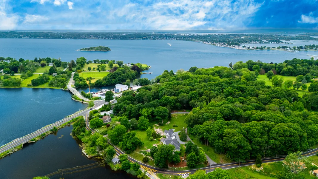 Custom built (2010) home sitting high on a hill with westerly views overlooking a pond and the Sakonnet River. Three levels offering over 5,000 sf of living. Eleven rooms, 4-5 bedrooms, 3 full baths, 2 half baths. First floor primary suite. Numerous upgrades throughout including newer heating system, roof, generator. Full walkout lower level includes a bedroom, bath, recreation room, family room and laundry. Private location on over an acre. Three car garage with an au-pair/guest apartment (555 sf) includes a family room, bedroom and roughed bath with separate entrance and single garage. This home has been beautifully maintained and the location is very private but yet close to Grinnell's Beach, Tiverton Yacht Club, numerous hiking trails, local restaurants and caf s.