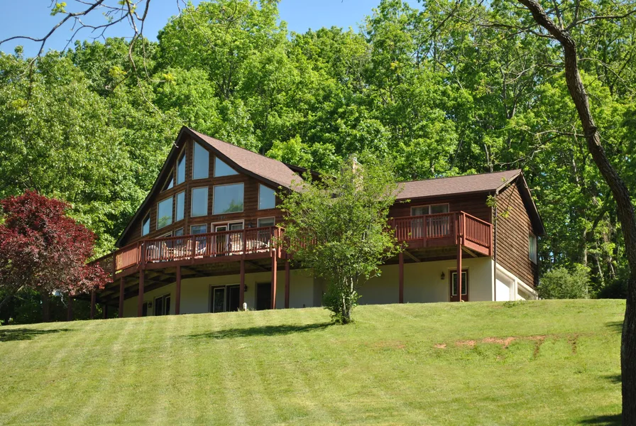 Beautiful A-Frame Home located minutes to Christiansburg w/ privacy & country living on almost 9 acres. Enjoy views year round through wall of windows & the wrap around deck. Main living area includes kitchen, DR & LR. All are in a very spacious great room. Prepare your meals on the downdraft cook top while you enjoy the company of friends & family around the island. The MBR has a private entrance to deck & corner jetted tub in MBH. On cool evenings sit by wood burning pass thru FP in LR or MBR. New 14 SEER 3.5 Ton HP just installed w/ 10 year parts warranty. Upstairs loft w/private balcony, could be used as BR & use full walk-out bsmnt w/kitchen & 2 rooms for mother-in-law or guest suite. Fenced pasture for cattle/horses w/ a creek. Move in ready w/ some rooms freshly painted, exterior stained and a newly updated 3BR septic system! Must see!