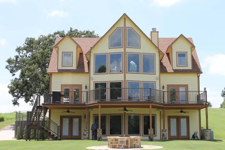 ESCAPE TO PARADISE! THIS QUALITY BUILT 4-4.5-2 TRI LEVEL WATERFRONT SITS ON OVER AN ACRE IN ELEGANT WATERS EDGE RANCH. HOME HAS ALL THE CUSTOM FEATURES & COMES FURNISHED. HAS GAMEROOM, WORKOUT AREA, CUSTOM ISLAND KITCHEN, WITH GRANITE & STAINLESS APPLIANCES, SAUNA, MASTER BATH WITH WALK-IN SHOWER, JACUZZI TUB. INCREDIBLE VIEWS THROUGHOUT, BOATHOUSE WITH PARTY DECK, GAS FIREPIT, AREA POOL & BOATLAUNCH, SO MUCH MORE. YOU WONT WANT TO LEAVE!