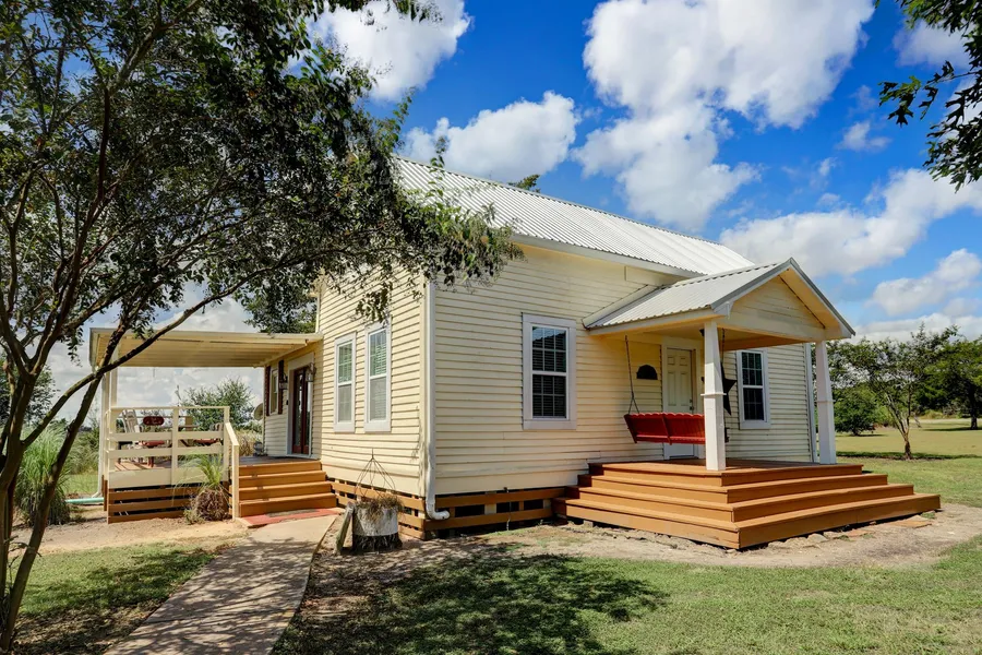 Farmhouse Round Top, located minutes from Round Top, is a proven incoming producing property perfectly suited to transition into a charming family compound. 2 Vintage Farmhouse structures, red wood Barn, a 34x14 metal building and sheds are ideally sited on spacious 2.14 acres.