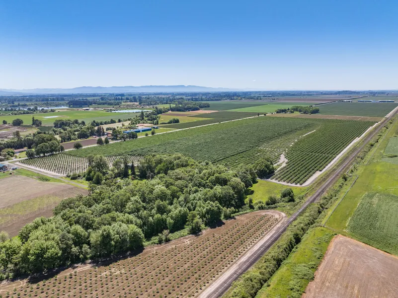 This 119 Acre Irrigated Farm is located east of the Corvallis airport w/ approximately 93.25 +/- AC of Hazelnut, 19 +/- AC of blueberries that is currently leased. Predominantly Woodburn soils, drip Irrigation & water rights from the Greenberry Irrigation District cover the entire farm. Drip Irrigation Mostly rectangular shaped w/ long frontage on Hwy 99W. Buyer to do their own due diligence W/ Benton County on Buildablity. Two well built agricultureoutbuildings. Excellent investment!