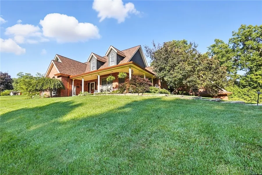 This is the one you have been waiting for in the sought-after Deber Estates! Sitting on just over an acre lot, this custom built, full brick ranch offers 2,719 sq ft of finished living space of one-level living with 3–4 bedrooms, 2 baths and a truly enchanting outdoor setting. A wide wrap-around front porch welcomes guests and sets the stage for the charming details found inside. Step through the leaded-glass front door into the foyer that opens to a dramatic living room with a soaring vaulted ceiling, rich hardwood floors and a floor-to-ceiling stone fireplace. French doors lead to a covered deck and open paver patio and area with a hot tub and gazebo - both stay with the home - perfect for alfresco dining and quite evenings under the stars. Designed for entertaining, the gourmet kitchen boasts a large island with sink and seating, gas cooktop, double ovens, built-in microwave and a breakfast room that flows into the living area. A formal dining room with floor-to-ceiling windows provides an elegant space for gatherings, and the laundry room is conveniently off the kitchen. The primary suite is a private retreat, boasting French doors that open to the hot tub area, a generous walk-in closet, and an ensuite bath with jetted tub, dual-sink vanity and separate shower. Down the hall, there are two additional bedrooms with large closets that share a well-appointed hall bath, and abundant storage is provided by three oversized hall closets. Above the two-car garage, a finished bonus room with baseboard heat (house is gas) and two walk-in closets, currently being used as the ultimate man cave, offers flexibility as a fourth bedroom, den or hobby space. The owners spared no expense on a new roof (2023) on the home and both storage sheds with gorgeous copper gutters with gutter guards. Every inch of this home has been thoughtfully updated and well maintained for years! Call today for your own private showing!