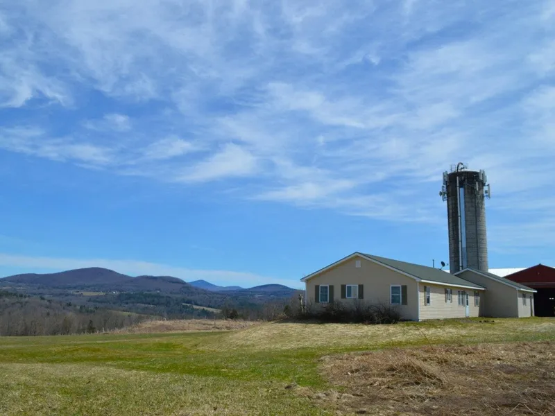 This lovely 3-bedroom, 2-bathroom single-level home sits on 59.7 acres with gorgeous pastoral & mountain views, a very spacious barn, & income-producing cell tower currently leased to VTel & Verizon. This home was designed with aging-in-place in mind & offers an attached 2-car garage with separate laundry area & utility sink - ideal for Vermont's harshest weather. Enter from the garage to a 5' wide entry hall/mudroom with extra-wide doors, both of which make wheelchair access a breeze. This entry hall opens to a warm, bright, & open living space, with gleaming laminate wood flooring & tastefully enhanced wood ceilings extending throughout. The kitchen features an island with dining space, storage, & beautiful wooden cabinetry, overlooking the adjacent formal dining space & living room. A glass sliding door opens to the backyard, providing opportunity for endless views & natural light, in addition to that provided by the home's many windows. The primary bedroom is at the front of the open living area & features 3 windows, continued wooden ceilings, en suite bathroom with linen closet & accessibility handle to the shower, & wonderful walk-in closet with shelving. 2 additional bedrooms sit at the other end of the home on either side of the 2nd bathroom, all boasting more wood accents & natural light! Possibilities abound! Please contact agent for more information on cell tower leases & subdivision potential.