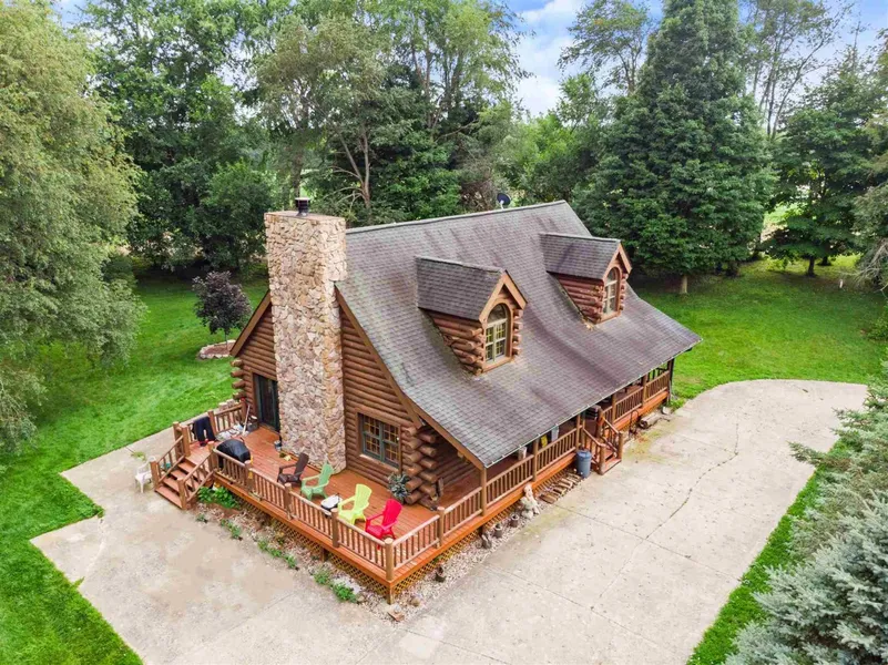Your very own private retreat and Sportsmans paradise awaits! 59 total acres mixed between 37 +/- acres of woods, ponds, trails, and the homestead. The other 22 +/- acres are tillable acreage. Its like having your very own State Park! The long, winding drive back through the woods to the log home sets the tone for your serene experience. The log home with soaring beamed ceilings contains 3 bedrooms, 2 full baths, and an unfinished full basement. The master bedroom upstairs occupies the entire second level with private bath and loft overlooking the living area below. An impressive floor to ceiling masonry wood burning fireplace is a focal point that compliments the living and dining area and provides warmth and comfort. Take in the fresh air and peacefulness on the deck with wrap around porch during the warmer months while watching the geese and wildlife roam about. Down the drive from th...