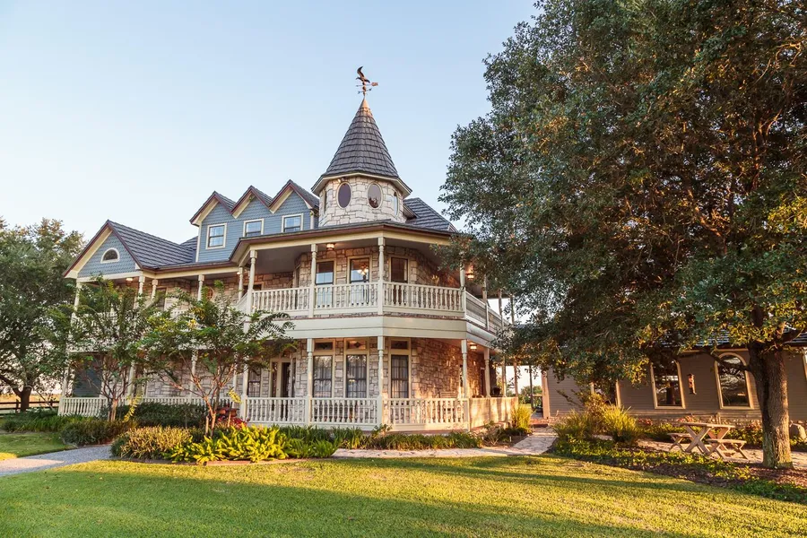 MAIN HOUSE: Appx 4117 SF (per WCAD) with 5BR/4 Baths. Completed in 1985, the main house features a classic living area with elegant wood paneling, hardwood floors and fireplace. This is a place to make family memories for a lifetime! The kitchen has an island, granite counter tops, under counter lighting with Sub-zero refrigerator and freezer. Enter the first floor master suite with coffered ceiling and up lighting, huge windows, plantation shutters and a fireplace for chilly evenings. Relax in the steam shower or garden tub under a stained glass window of bluebonnets. Find quiet time in the study surrounded by built-in bookshelves with rolling ladder and hardwood floors. The remaining bedrooms are upstairs. The first and second floors enjoy over 1600 SF of wrap-around porches. Relax on the swings and enjoy the views. The third floor is a great hideaway for adults or a play area for the kids.